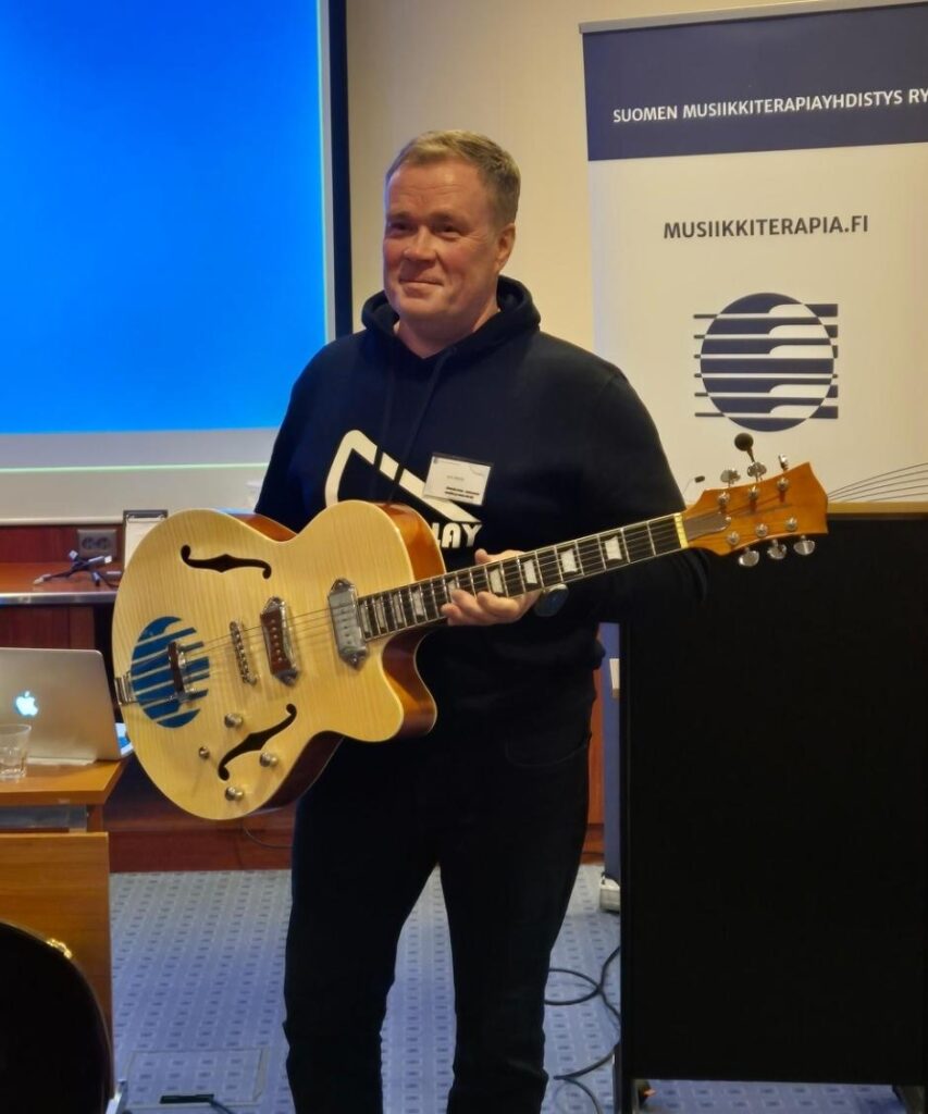 Vuoden musiikkiterapeutin palkinnon ja Suomen musiikkiterapiayhdistyksen kitaran sai tänä vuonna Jyrki Nikkilä.